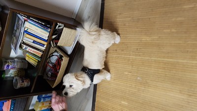 Dabei hat mir die Dame die spitzen Krallen gefeilt. Tat gar nicht weh. Hundeopi ich komme, wir können weiter toben. Ich bin Frauchens ganzer Stolz. Das kann sie auch sein mein kleiner Freund.