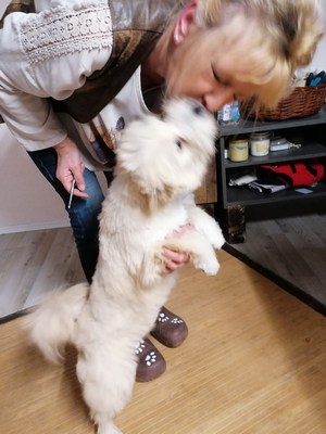 .... ich musste die Dame vom Salon einfach knutscheln. Das war mein Dankeschön an sie. Dankeschön lieber Hundepapa für den Schnappschuss