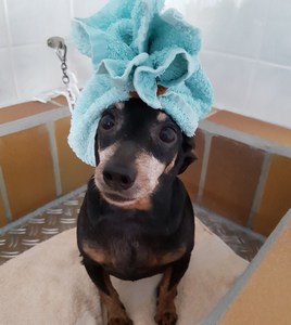 Baden, Föhnen, Bürsten, Schneiden, Scheren
