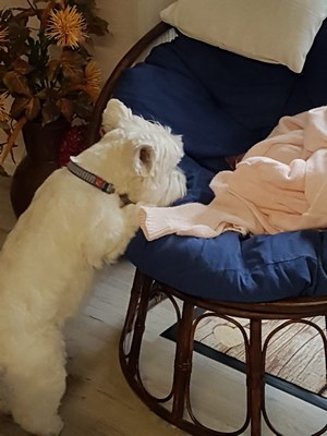 und kann schon allerhand Kunststückchen mit meinen 1 1/2 Jahren, das bringt mir alles mein Frauchen bei.